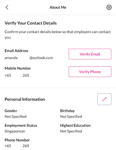 Start by verifying your email and mobile number to make sure employers can reach you.