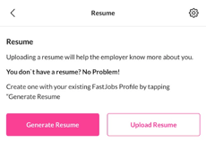 - Generate Resume – let FastJobs create a resume based on the information you’ve already entered in your profile