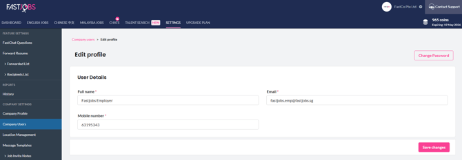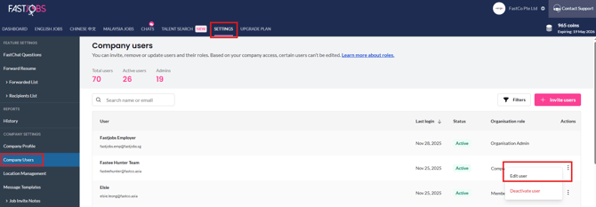 Click [Invite Users] — and you're done! An activation email will be sent to the new user from noreply@fastjobs.sg.
